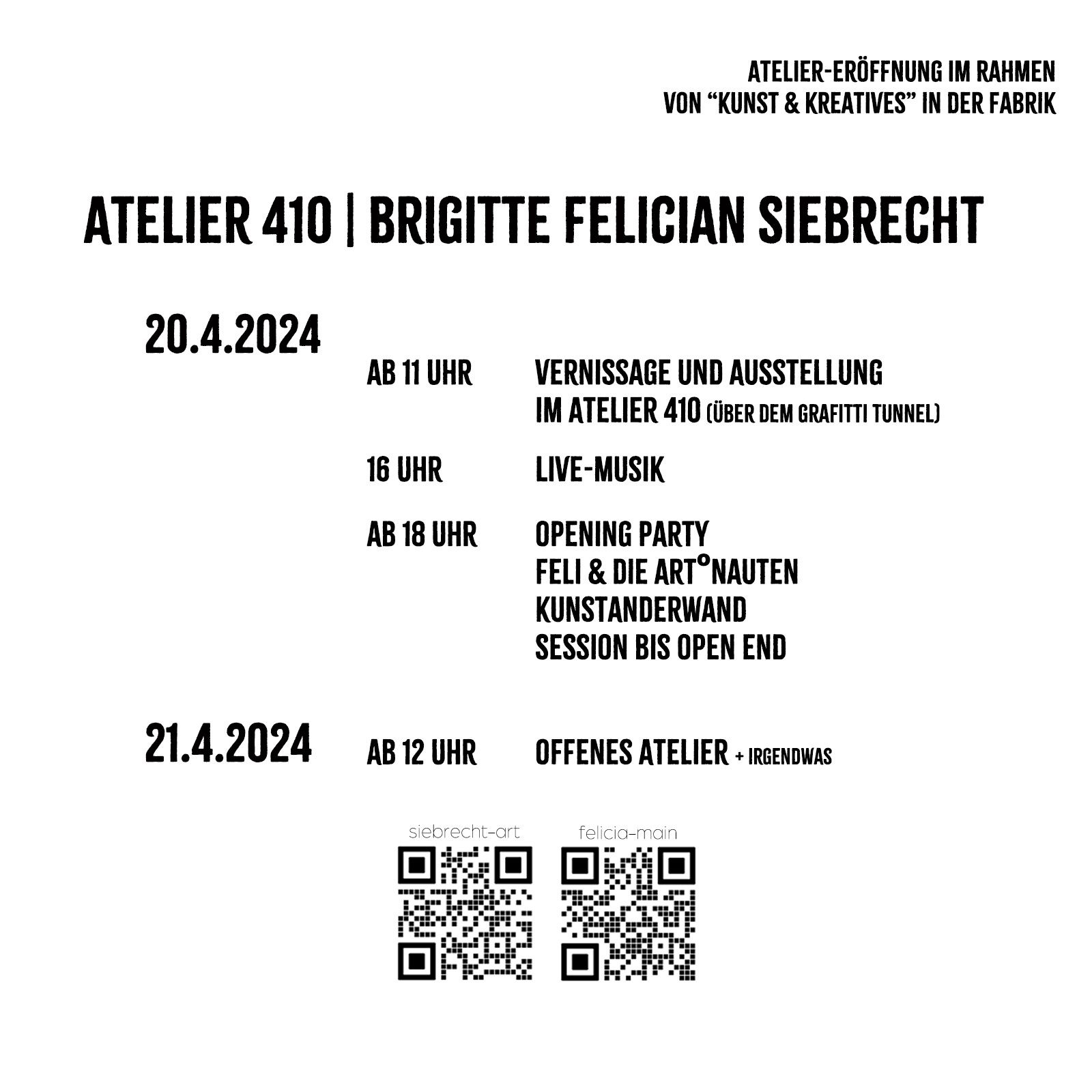 ab 11 Uhr Offenes Atelier im Atelier.410 (Eingang über die Treppe im Graffiti Tunnel