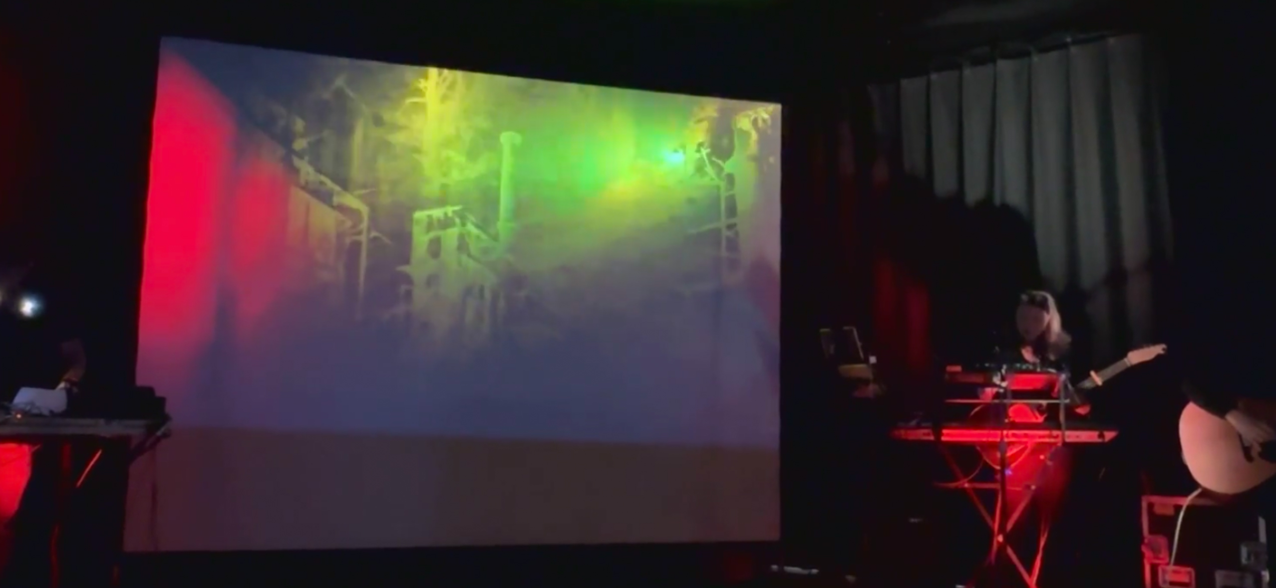 Performance entsteht die Musik weitgehend improvisiert durch Interaktion zwischen den MusikerInnen und dem Video. Die Video Elemente sind generativ und reagieren umgekehrt auf die live performte Musik.