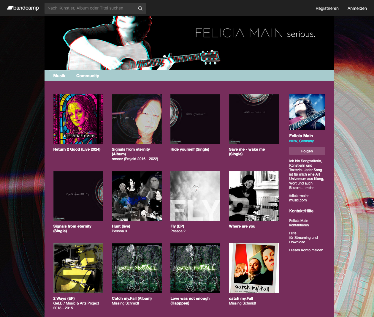 Die Songs von Felicia Main sprechen von Sehnsucht und von den Wellen des Lebens. Einladung von Herzen zum Einlassen auf Lebens-Themen – auch fernab vom Mainstream – welcome!